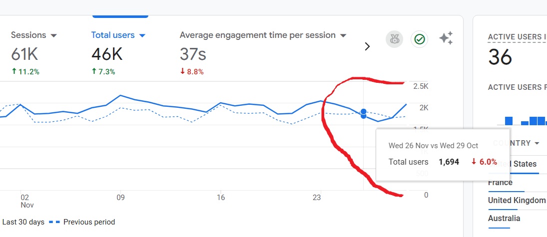 That being said, I don’t think it’s just Google. My Pinterest traffic has gone down since the 24th, I guess it would be normal on Thanksgiving and the day before Thanksgiving, because everyone in the US is at the dining table. I hope it will get back up.
