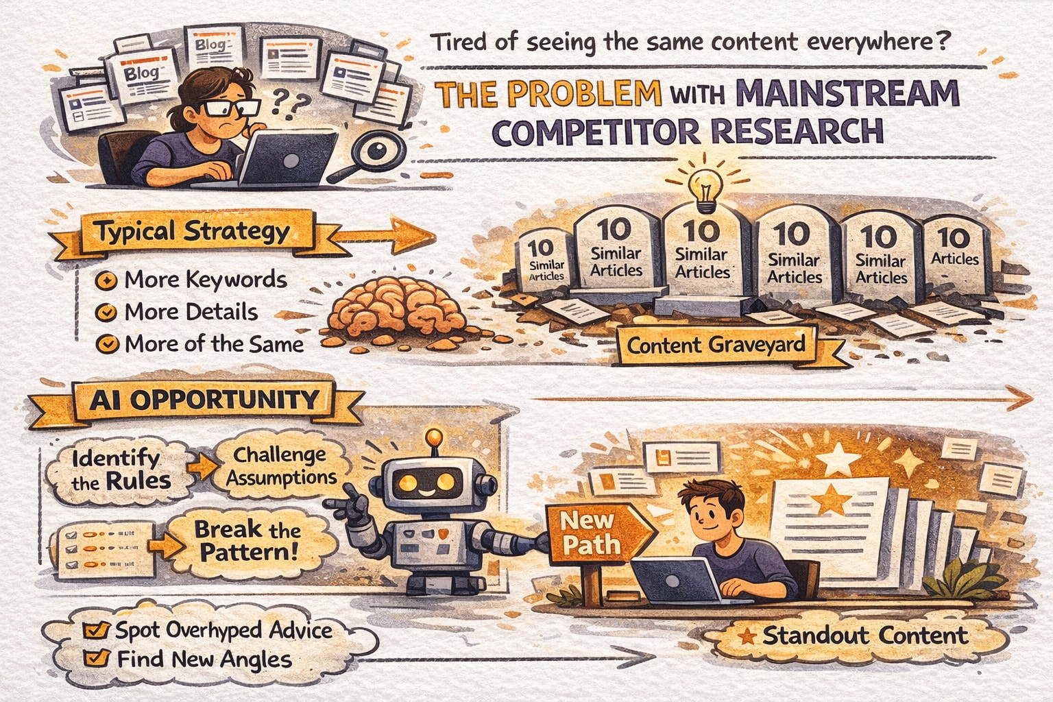 Today, we’re discussing competitor research, and yes, we’re utilizing AI. But not in the usual “how to steal ideas with a robot” way. More in the “how to stop writing the same content as everyone else and still rank” way.