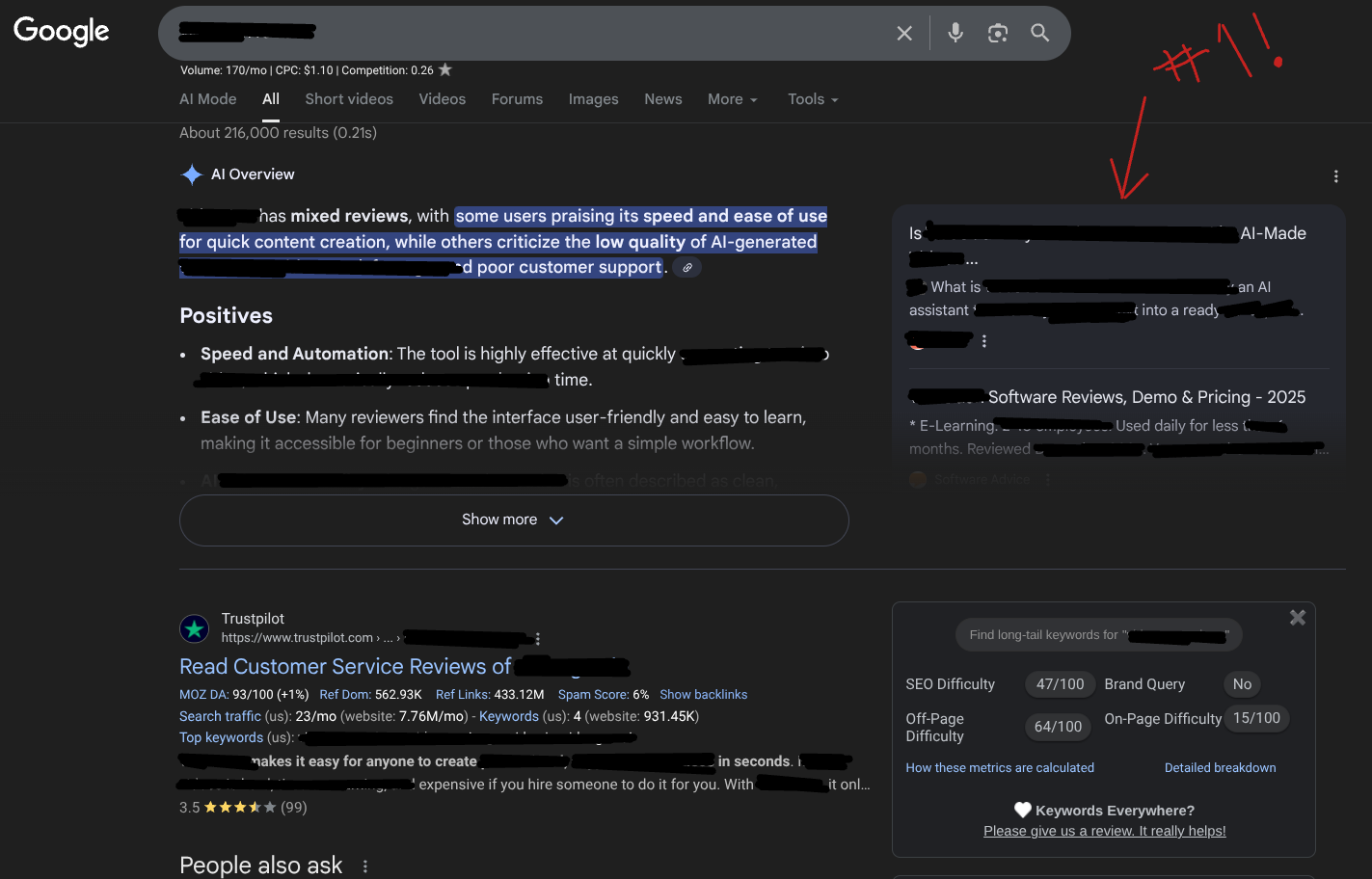 I’ve also run a campaign on Target #3 (a SaaS AI tool) over the last week. That’s not produced any significant movement yet although I have noticed I’m showing up in the AI overviews in Google since running this one … appearing right at the top of the SERP. Woop!